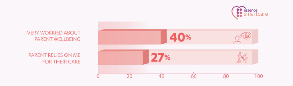 Our research conducted in the UK sheds light on the emotional burden carried by caregivers. Over a quarter of caregivers who are concerned for their parents’ well-being feel that their parents rely solely on them for care, amplifying the sense of responsibility. Unfortunately, the emotional toll of caregiving has an actual measurable impact, with 52% reporting high levels of stress related to caregiving.